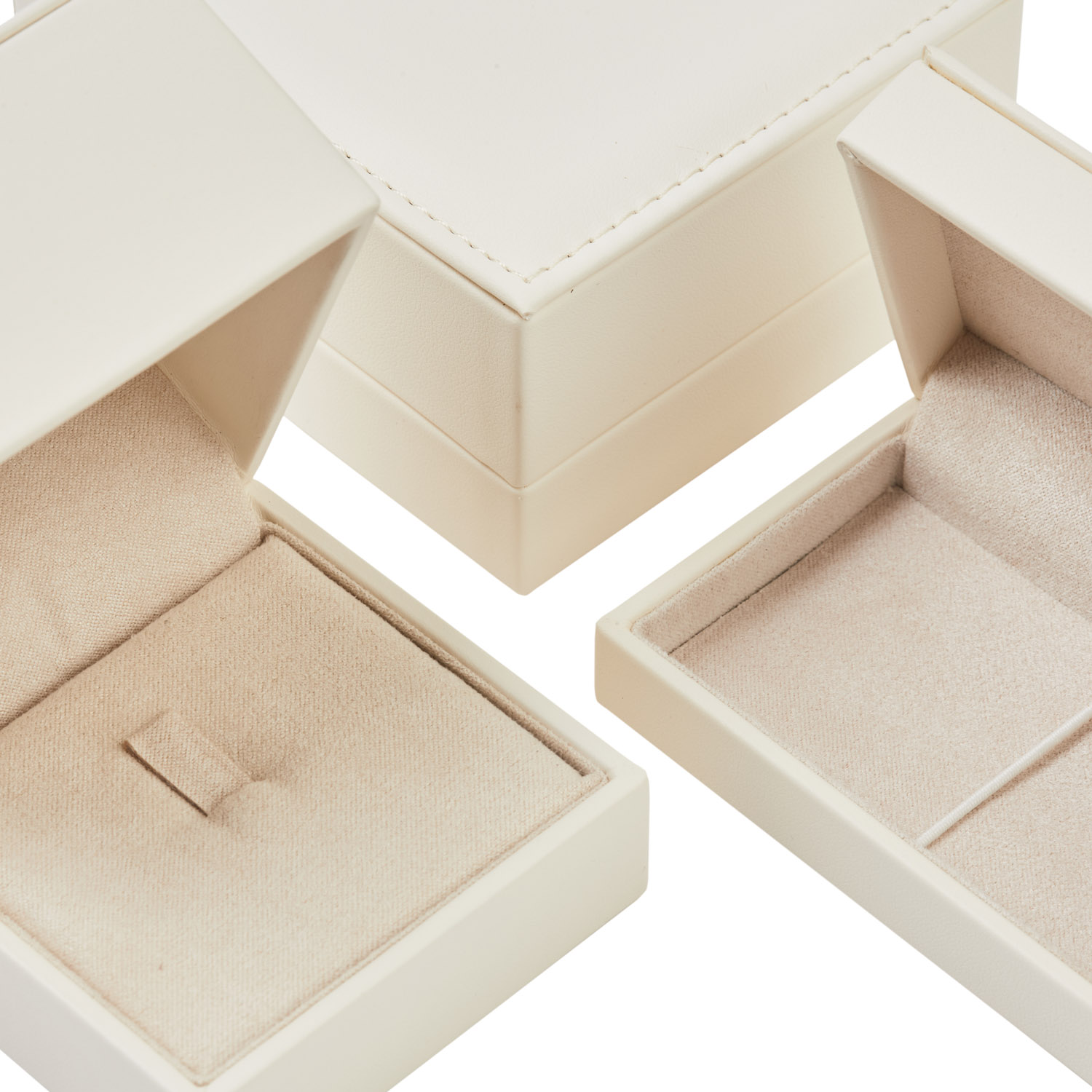 Cases with chest opening case covered outside in synthetic leather and inside in microfiber material.