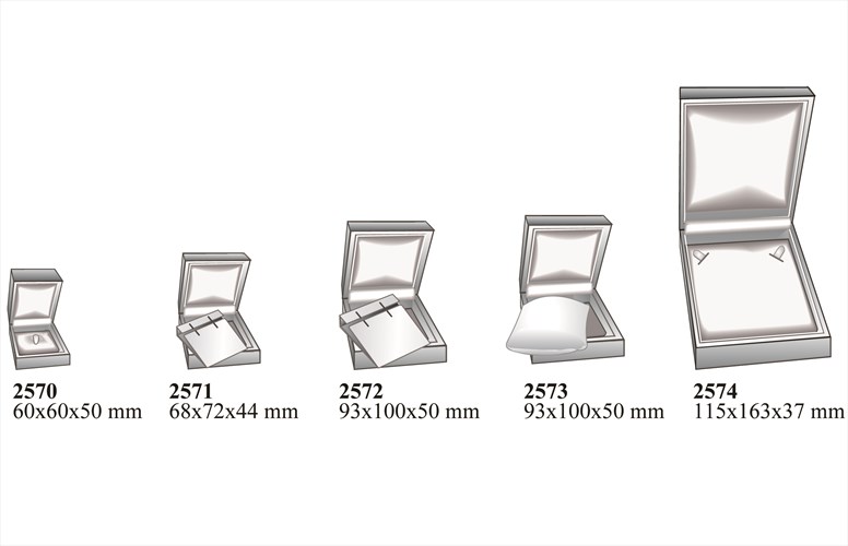 Forniti con scatola di confezionamento ricoperta in carta goffrata iridescente nello stesso colore dell’astuccio.