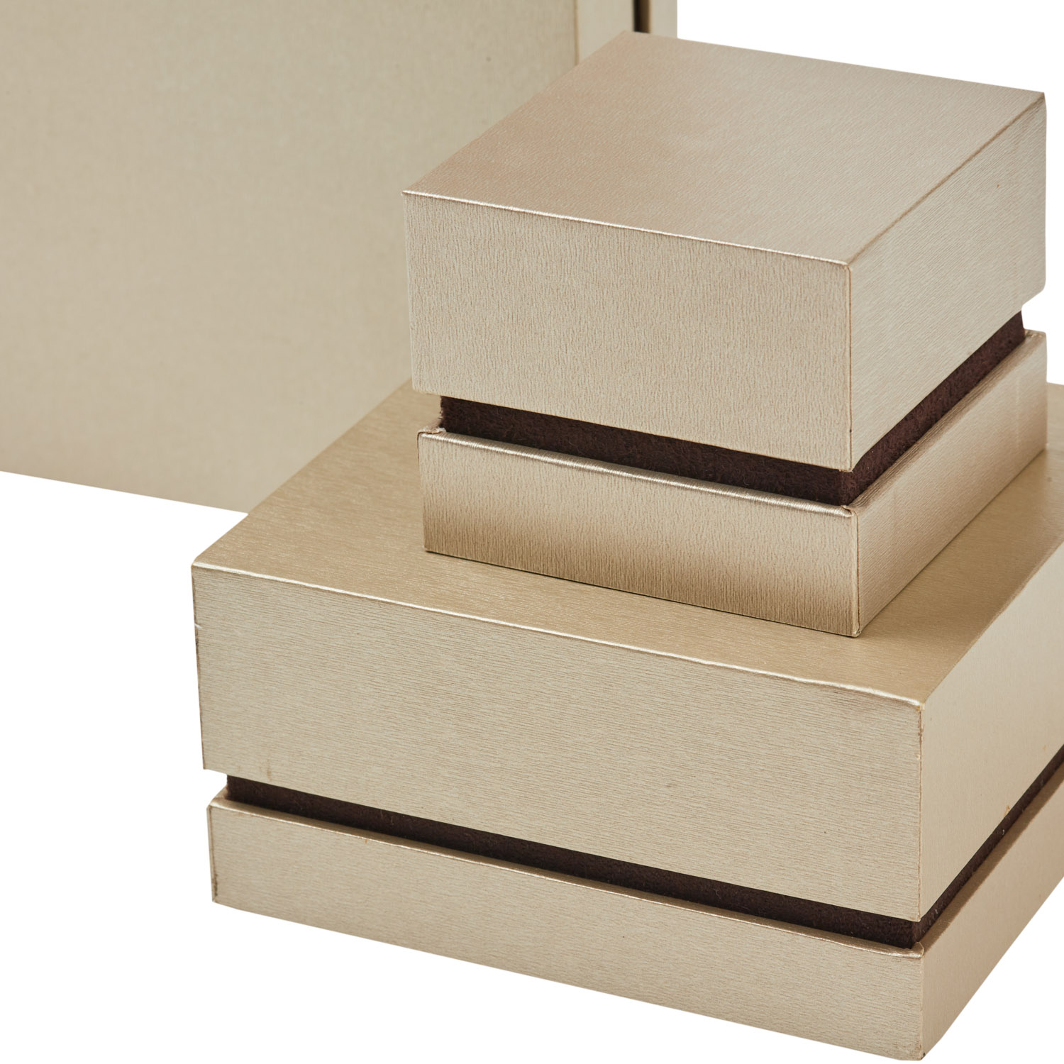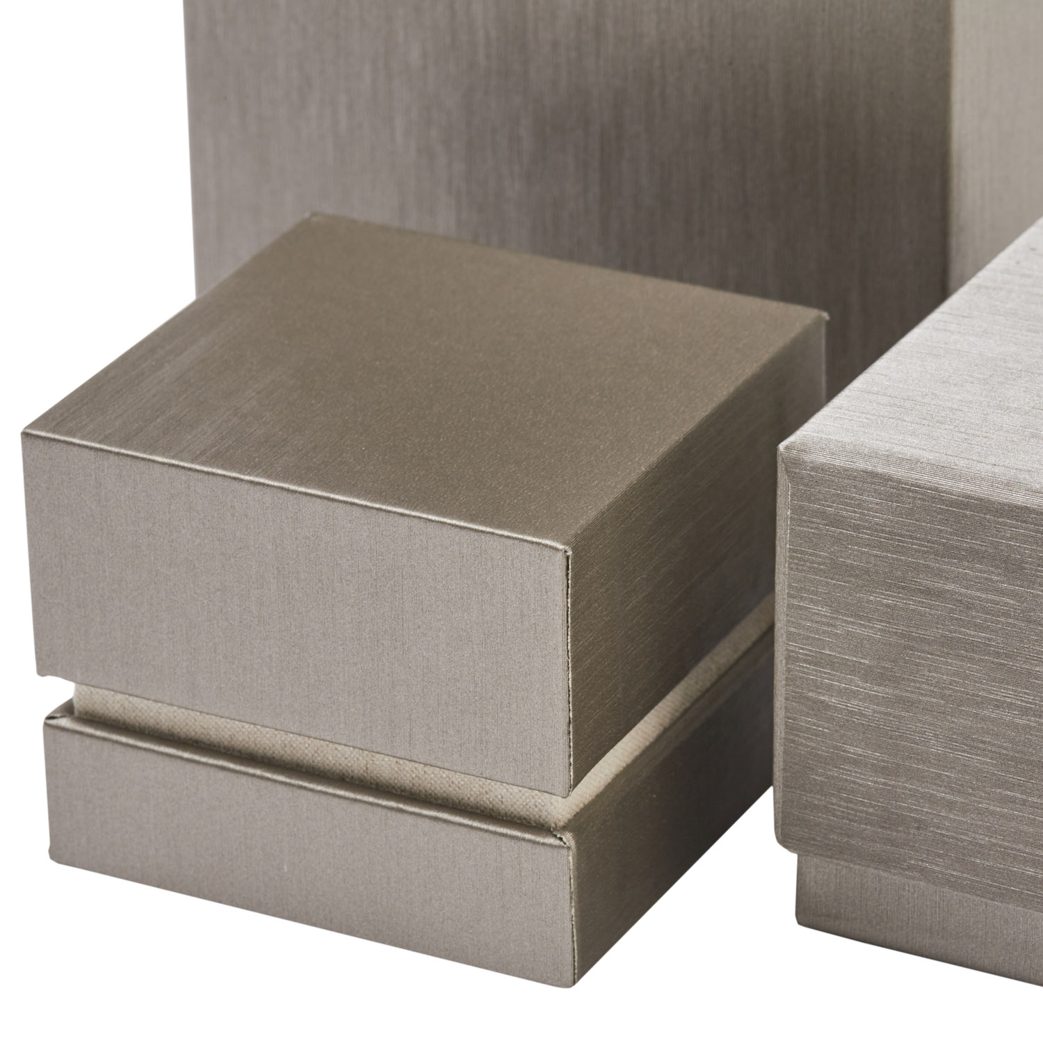 Supplied with two piece packer covered in iridescent embossed paper in the same color as the case.